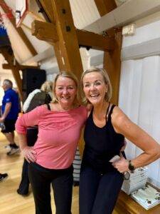 Tabata (intervallträning med step-up bräda med vikter och skrivstänger) Passar alla. Bra Cardioträning.